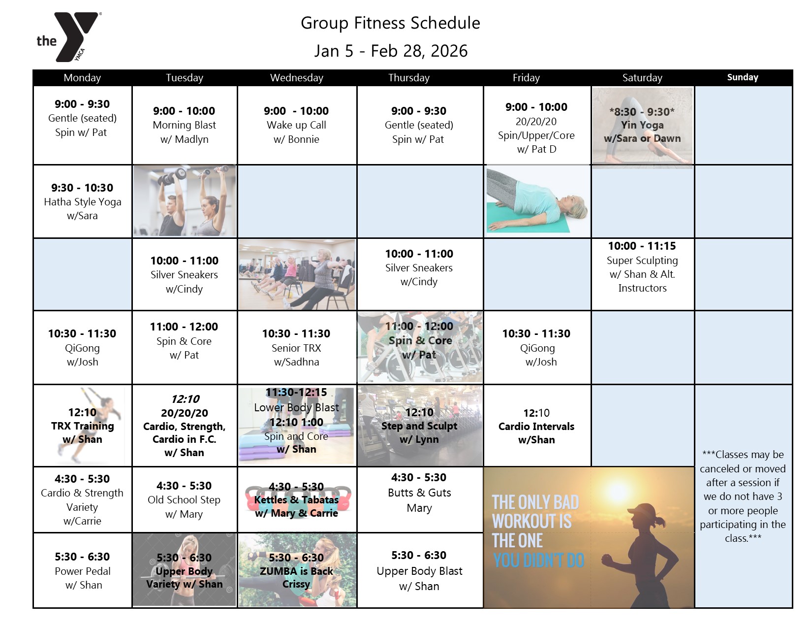 - Using or possessing alcohol or illegal drugs on YMCA property or at YMCA sponsored programs.
